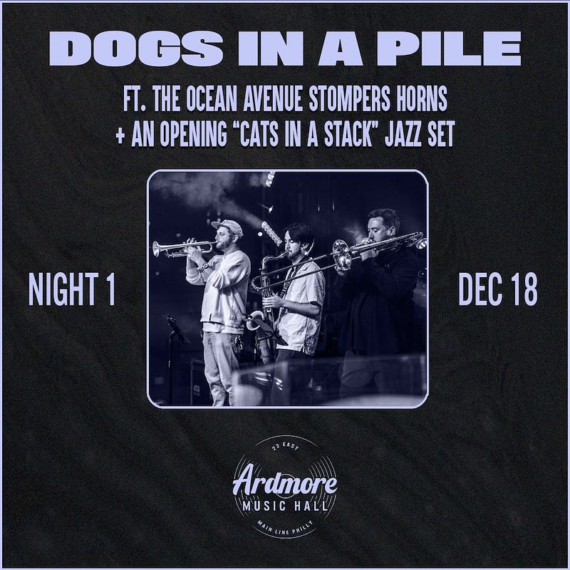 Dogs In A Pile with opening Jazz Set by Cats In A Stack and ft The Ocean Avenue Stompers