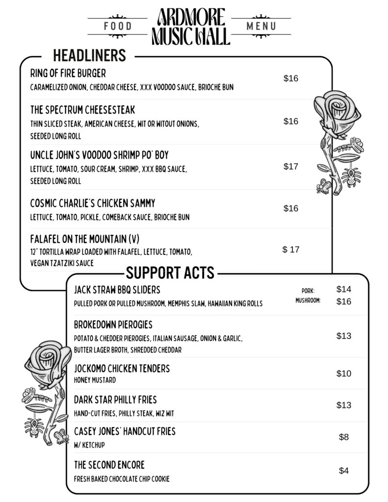 Ardmore Music Hall offers innovative food and drink menus to keep you full and happy during your concert experience