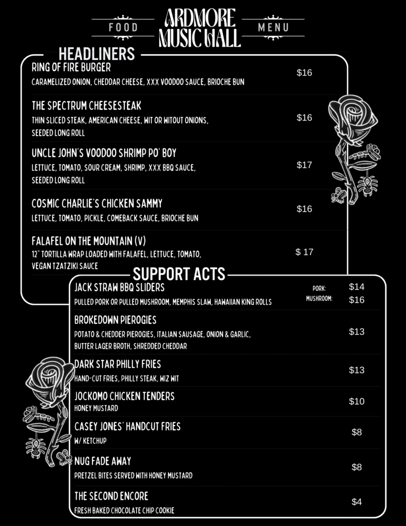 Ardmore Music Hall offers innovative food and drink menus to keep you full and happy during your concert experience